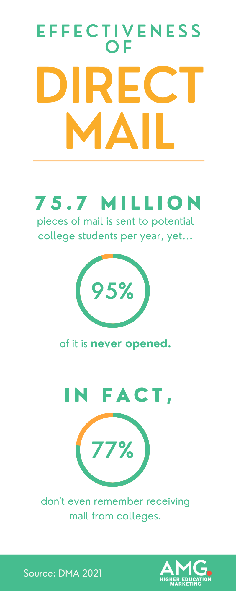 Of course not! Direct mailing prospective students has been around since before the internet came about. Colleges and universities should reevaluate which platforms make the most sense in order to reach students more effectively as well as avoid wasting advertising dollars.
